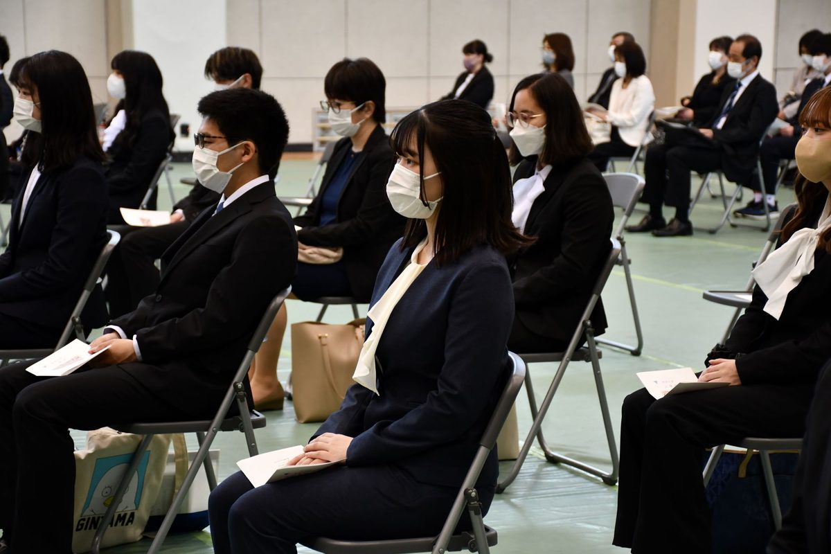 看護学科と大学院の式典では森正樹医学部長(副学長・医系担当)が、「自分が厳しい状況にあるときにこそ患者さんに優しくできる力を培ってください。大学生活を通じて知識を蓄え、よき友人を得て、その上に忍耐力を養い、本当の意味での“良い看護師”になってほしいと願っています」と祝辞を述べました。大学院医学研究科の秦野伸二研究科長は、「大学院では先人が見出した知識や技術を学ぶだけでなく、新たな知識をつくり出さなければなりません。そのためには、問題点をしっかりと把握して工夫を重ねることが大切です。仲間と協力し、自分を磨いてください」と激励しました。看護学科の新入生は、「コロナ禍で献身的に患者さんの治療に取り組む医療従事者の姿を見て、看護師を目指そうと決めました。信頼される看護師を目指して勉学に励みます」とコメント。医学研究科の新入生は、「臨床経験を積む中で、基礎研究の大切さを実感しました。一人ひとりが患者さんの思いを胸に、真摯に研究に取り組みたい」と話していました。