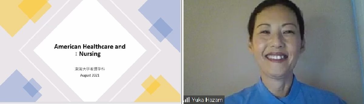 医学部看護学科ではハワイ東海インターナショナルカレッジ(HTIC)と連携し、ハワイで活躍する日本人看護師によるオンライン講演会「Remote Session with HTIC:Nursing English 2021」を8月14日に実施しました。新しい時代の国際社会に貢献できる能力と国際的な視野を身に付けてもらうため、全学科生を対象として初めて実施したものです。ホノルル市にある聖ルカクリニックで働く西村ちえ氏と、同市内のクィーンズメディカルセンターに勤務するユカ・ハザム氏が英語で講演し、学生や大学院生、教員ら多数が参加しました。