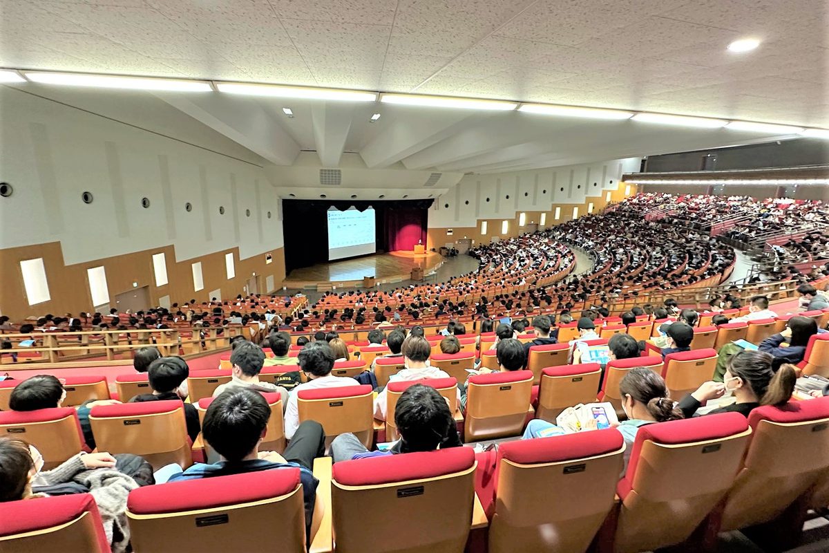 湘南キャンパスで4月6日、7日に2号館(2S-101教室)を会場に学部3年次生及び修士1年生向けの「就職ガイダンス」を開催しました。コロナ禍ではWEBでのガイダンスを余儀なくされてきましたが、2019年度以来の3年ぶりに対面形式で開催し、2日間で延べ約2800名の学生が熱心に説明を聞きました。