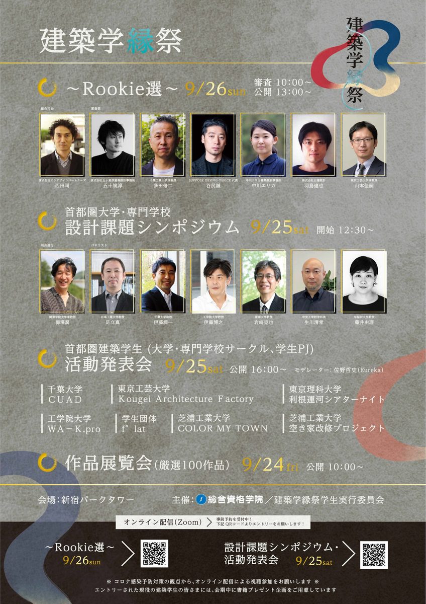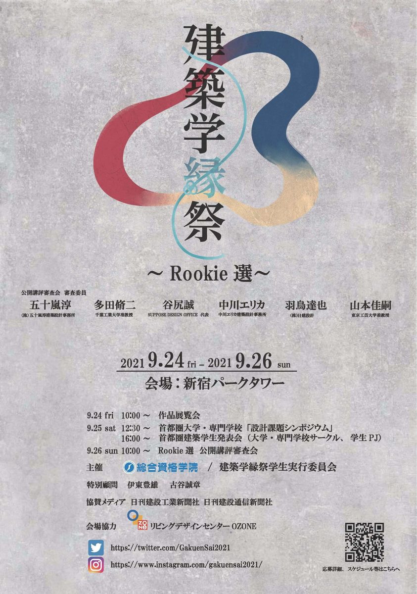 建築を学ぶ関東エリアの学生を応募対象とする設計課題競技「建築学縁祭 ~Rookie選~」が、9月24日(金)~26日(日)、新宿パークタワーを会場に開催されます。