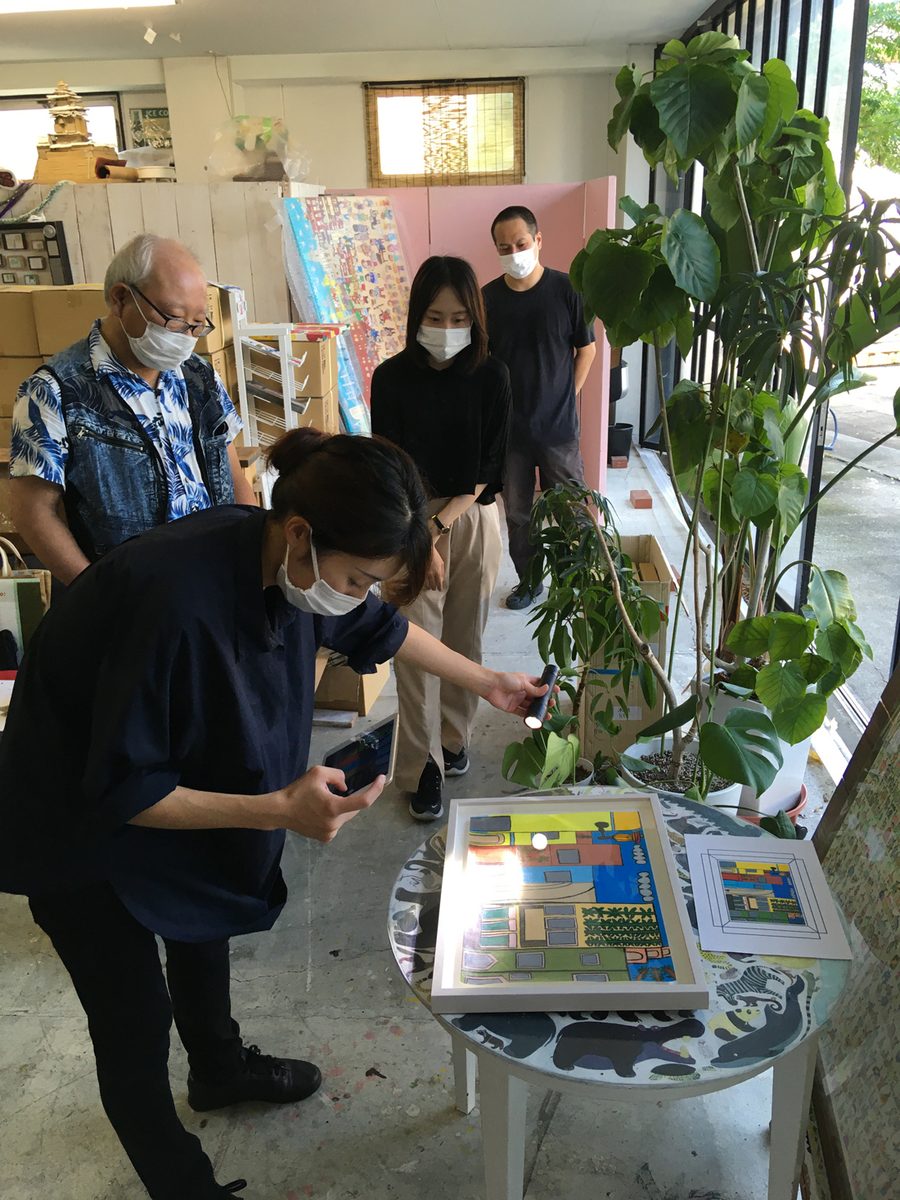 8月30日には、篠原准教授と本企画のサポートリーダーを務める川﨑一史さん(文化社会学部4年次生)がスタジオクーカと県立青少年センターを訪れ、作品の点検や搬出・搬入、展示設営を行いました。川﨑さんは、「コロナ禍で対面の実習が減り、今回初めて会場に絵画を設置する作業に携わったのですが、一緒に作業した業者の方がレイアウトしていく行程はとても勉強になり、普段美術館や博物館で鑑賞する作品は緻密な計算のもと飾られていることに気づきました。作品や作者の感性を純粋に楽しむだけでなく、鑑賞を通じて自分の考え方や感性を再発見し、それぞれが持つ多様性のイメージを膨らませて欲しいと思います」と語っています。