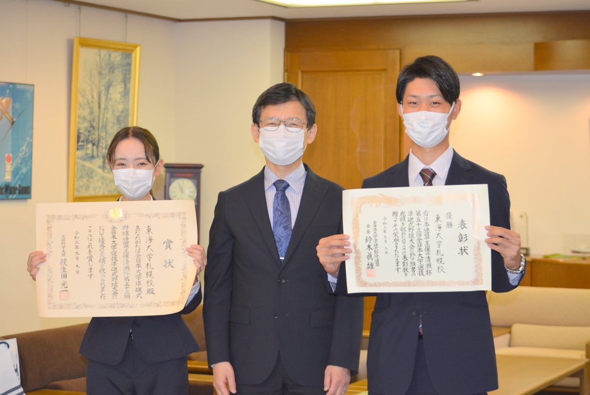 9月13日、清瀬杯第53回全日本大学選抜準硬式野球大会にて初の全国優勝を果たした準硬式野球部が、網野札幌キャンパス長に優勝を報告しました。