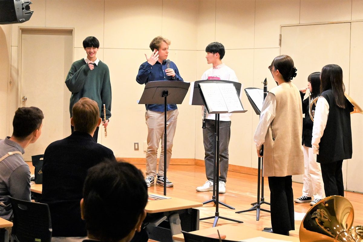 吹奏楽研究会でオーボエを担当する一鍬田優さん(教養学部人間環境学科社会環境課程4年次生)は、「5つの楽器の音の混ざり方や調和の大切さをあらためて感じるとともに、初歩的な部分でも自分が考えている以上にもっと意識しないといけないと実感しました」とコメント。同じくオーボエの藤野帆乃夏さん(教養学部芸術学科音楽学課程4年次生)は、「普段の授業でもプロの先生から教わっていますが、アンサンブルに対する指導は初めてで、バランスの大切さを教わりました。オーボエが目立つべきところは意識して吹いていましたが、周りを生かす演奏も必要だと学び、だんだんと一体感が増していくのを感じられたことが勉強になりました」と語っていました。