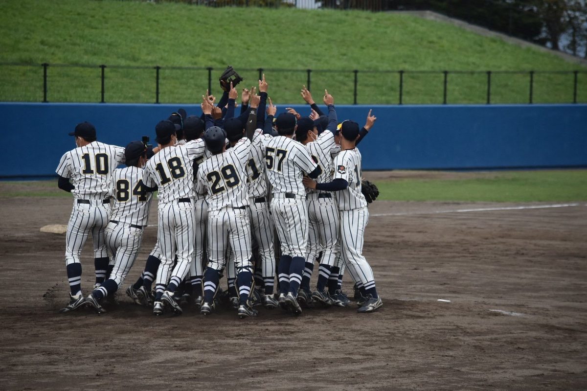 リーグ戦では、初戦で北翔大学を8―1(8回コールド)で制すと、札幌大学戦は1-1の9回に平野龍之介選手(国際文化学部3年次生)のタイムリーでサヨナラ勝ちを収めます。その後も投打がかみ合い、8連勝で最終日を待たずに優勝が決定。札幌大谷大学、札大にも勝利し、10連勝で優勝に花を添えました。日下部憲和監督(東海大学職員)は、「春のリーグ戦は3連勝してこれからというところで打ちきりになってしまった分、選手たちの秋にかける思いは強かったと感じています。工藤稜太(同4年次生)を中心とした投手陣が10試合で自責点8と、よく踏ん張ってくれました。野手は打撃練習に時間を割いてきたことで、しぶとい攻撃ができました」と勝因を語りました。