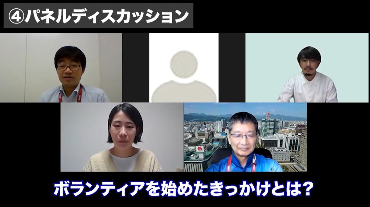 国際文化学部の植田俊講師による企画趣旨の説明に続いて、日本スポーツ・ボランティアネットワーク・コーディネーターの小上馬広介氏、NPO法人ランナーズサポート北海道理事の桜澤智志氏、東海大学スチューデントアチーブメントセンター・札幌ボランティアプロジェクトに所属する国際文化学部4年次生の黒野春華さんの3名が講演。小上馬氏は、全国各地のスポーツ大会でボランティアスタッフを務めた経歴を紹介し、「日本のスポーツイベントにおけるボランティアは海外で称賛されていますが、ボランティアは“無償の労働力”から、イベントの成否を左右する存在に変化していると感じています。コロナ禍では感染対策の徹底など今までとは異なる点があります。そのうえで多くの人に楽しみ活躍してもらいたい」と語りました。桜澤氏は、北海道マラソンの運営を目的に設立されたランナーズサポート北海道の活動内容を紹介し、東京五輪でのボランティア経験を振り返りました。インターネットやSNS上でスポーツイベントの開催可否、スポーツボランティアの雇用形態などにさまざまな意見が散見されることを踏まえ、「感染対策をはじめ、運営側の意識改革やスタッフへのケアは重要。無給制の是非についても考えていく必要があると思います」と提言しました。また、黒野さんは東京五輪で初めて務めたスポーツボランティアの活動について語り、「周りの人たちと協力し達成感を得ることが一番の喜びだと思いました。私はボランティアが“無償”“自己犠牲”と言われていることに違和感があり、自らが楽しむために参加するべきだと感じました」とコメント。コロナ禍でも継続していくための対策など、学生の視点から意見を述べました。 最後にパネルディスカッションを実施し、「ボランティアを始めたきっかけは?」「スポーツボランティアへの批判『やりがい搾取』問題について」「スポーツボランティアの魅力」など多様なテーマで意見を交わし、参加者自身が楽しみながらイベントを運営するための方法を議論しました。