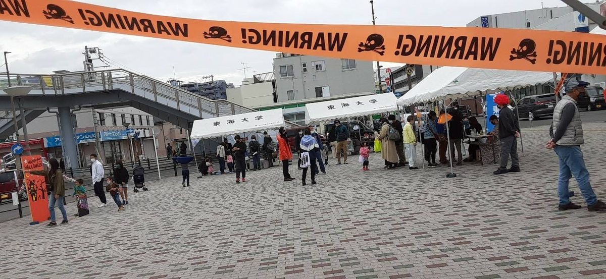 湘南キャンパスで活動するスチューデントアチーブメントセンター「キャンパスストリートプロジェクト(C.A.P.)」が、10月24日から11月2日まで小田急小田原線「東海大学前駅」の駅前広場で「TOKAI HALLOWEEN TOWN 2021」を開催しました。本イベントは、新型コロナウイルス感染症の影響で学生の行き来が少なくなった大学周辺の地域を、季節感のあるイベントで盛り上げようと企画したものです。