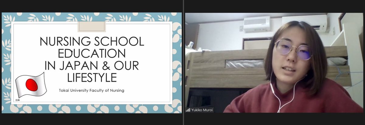 医学部看護学科では12月6日に、デンマークのVIAユニバーシティカレッジ看護学科とのオンライン研修会「Virtual visit – Tokai University and VIA University College」を初めて実施しました。同カレッジは東海大学医療技術短期大学と、短大が開学した1974年から学生や教員が相互に訪問するなどの交流を続けてきました。本学科と同カレッジでは、医療短大が2020年度以降の学生募集を停止したことを受け、長期わたるその関係を引き継ぐため21年2月に学術交流協定を締結。本研修はこれを受けて企画したものです。当日は、双方の学生と教員、東海大学ヨーロッパ学術センターのスタッフら約20名が参加し、学生の英語によるプレゼンテーションに続いて意見交換を行いました。