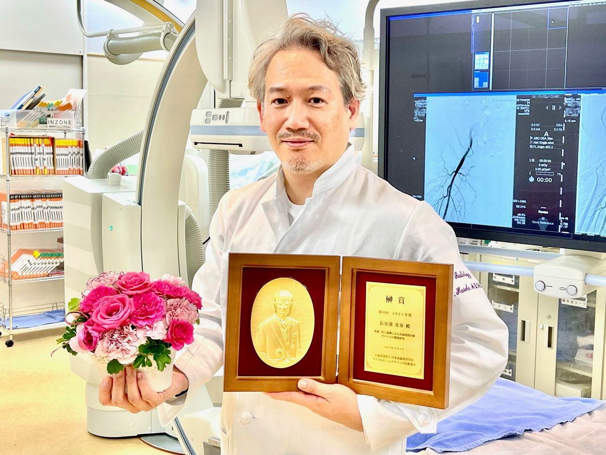 医学部医学科専門診療学系画像診断学の長谷部光泉教授(医学部付属八王子病院血管内治療センター長)がこのほど、「医工連携による表面改質医療デバイスの開発研究」により、公益社団法人日本表面真空学会マイクロビームアナリシス技術部会「榊賞」を受賞。2021年11月4日にオンラインで開催された同技術部会の第6回研究会(日本表面真空学会学術講演会部会セッション)で表彰式と受賞講演が行われました。