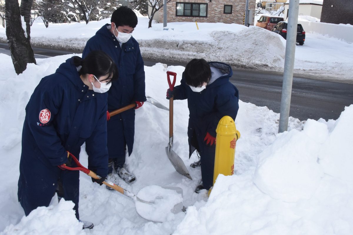 本プロジェクトは2008年度に「福祉除雪プロジェクト」として発足し、キャンパス周辺の町内会会員の中から自力で除雪が困難な世帯を対象に希望を募り、除雪支援ボランティアに取り組んできました。16年度からは活動の幅をさらに広げようと現在の名称に変更。市内の住宅地を中心に除雪活動を行ってきましたが、20年2月以降は、新型コロナウイルス感染症の拡大により活動を休止していました。約2年ぶりの除雪活動となる今回は、感染対策のため地域住民の住宅での活動ではなく、南沢旭台町内会との連携のもとキャンパス周辺に設置されている消火栓など公共物の除雪に取り組みました。