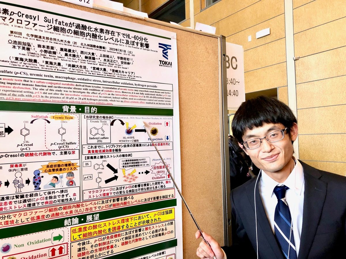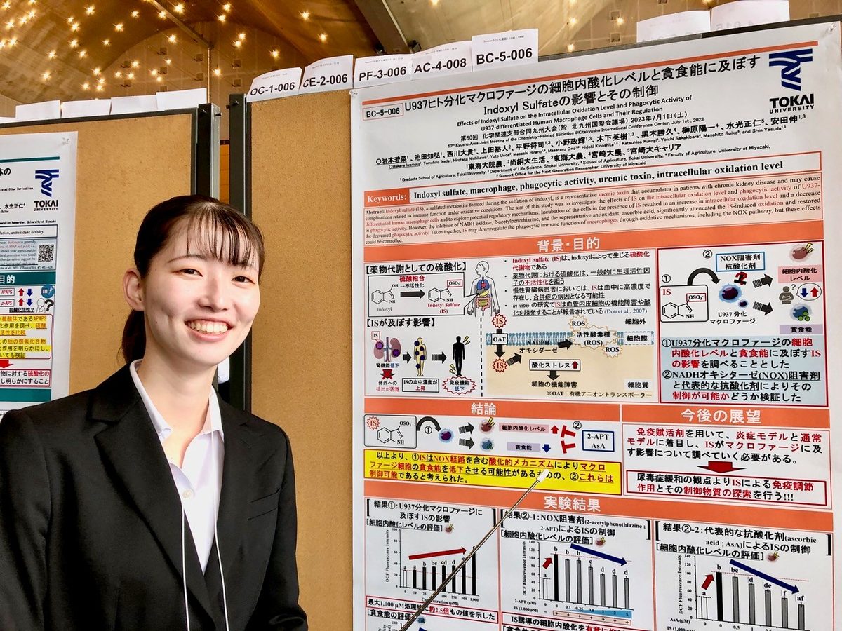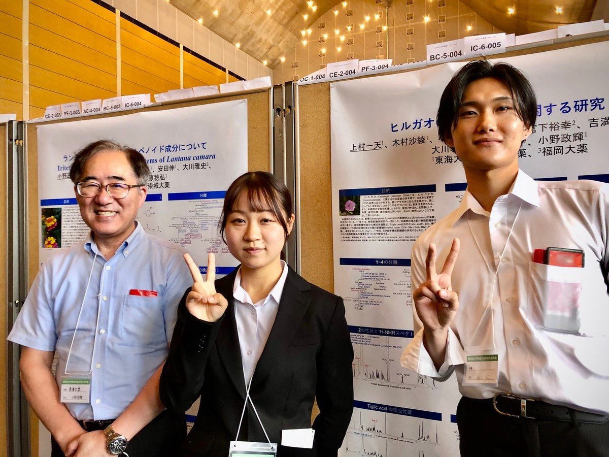 主に西日本の各地から研究者や学生が集まる中、本学からも7名の大学院生が指導教員と一緒にポスター発表を行いました。彼らの研究テーマは生物化学、天然物化学、食品機能科学、食品バイオ化学に関連しており、ポスターを通じて研究内容を発表しました。また、他の大学の研究者や学生との質疑応答を通じて交流を深め、自身の研究を進めるためのヒントや助言を得ることができたようです。