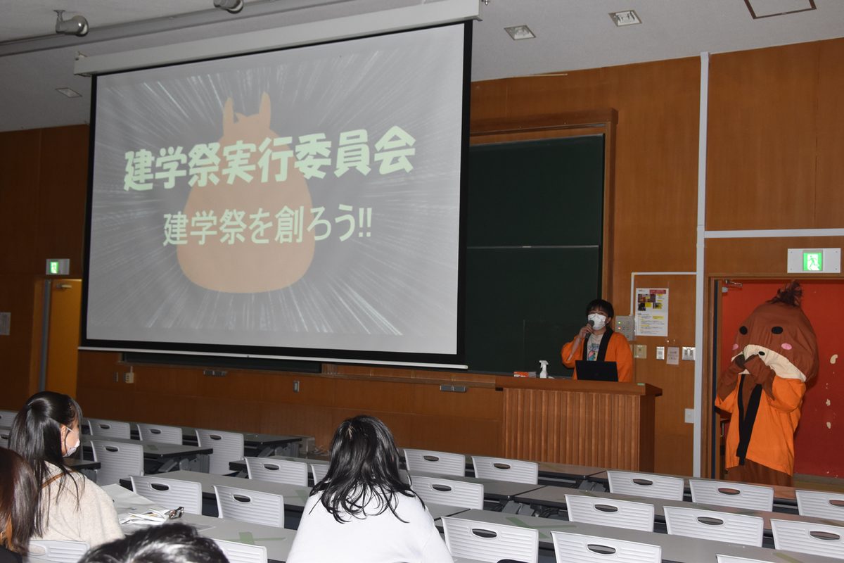 会は吹奏楽部の生演奏でスタートし、水族生物展示研究同好会や東海大学札幌校舎よさこいサークル~祭屋~、地域連携プロジェクトSAN+といった計13団体の代表者が、日ごろの活動内容や大会実績などを紹介しました。学生会の竹村汐海会長(生物学部4年次生)は、「新入生のために何かできないかと考え準備を進めてきたので、想像以上に多くの参加者が集まりホッとしました。対面授業が徐々に増えているので、部活動やサークルに入ってキャンパスを充実させてほしい」と語ります。司会進行役を務めた札幌ボランティアプロジェクトの吉田遥さん(国際文化学部3年次生)は、「最初はオンラインでの開催を予定していましたが、会議の中で『対面の方がより魅力を伝えやすい』という声が上がり、直前で変更しました。少しでも興味のある団体が見つけてもらえればうれしい」とコメント。建学祭実行委員会の丹治杏里紗さん(生物学部3年次生)は、「私たちが入学した年は新型コロナウイルス感染症が流行し始めたばかりで、サークル紹介などの企画がなく、大学にどんな学生活動があるのかわかりませんでした。新入生には大学生活でいろんなことに挑戦してもらいたい」と話していました。