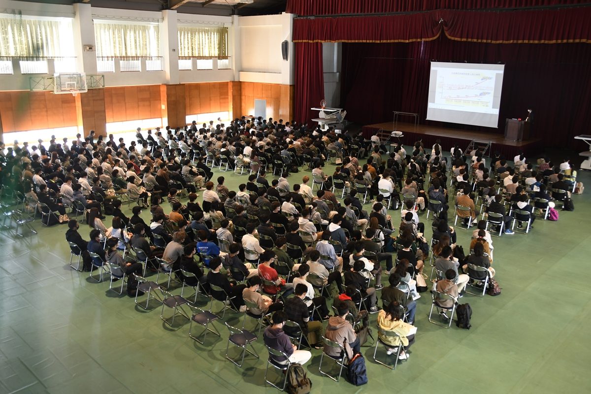 新入生約350名が出席した4日の第1回ガイダンスでは、齋藤寛学部長があいさつし、「昨年度までは新型コロナウイルス感染症の拡大もあり、学生生活に一定の制限を設けざるを得ませんでした。今年度は面接(対面)授業を基本とし、クラブ・サークル活動も十分な感染対策を講じた上で活動を充実させてほしいと考えています。海洋学部は1962年の開設以来、多数の優秀な卒業生を輩出してきました。60年の歴史を数える間に、本学部は世界規模で人類が抱えるさまざまな問題と向き合いながら、時代の要請に応じて海に関する学際的教育機関として発展してきています。皆さんもこの4年間でたくさんの友人をつくり、信頼できる教職員と出会ってください」と歓迎の言葉を述べました。また、「2022年4月から法律が変わり、成人年齢が18歳となりました。つまり、皆さんはすでに成人です。多くの自由が認められる一方で責任も発生しますので、十分に注意をして生活してください。何か困ったことがあれば、大学の教職員に相談してください」と呼びかけました。