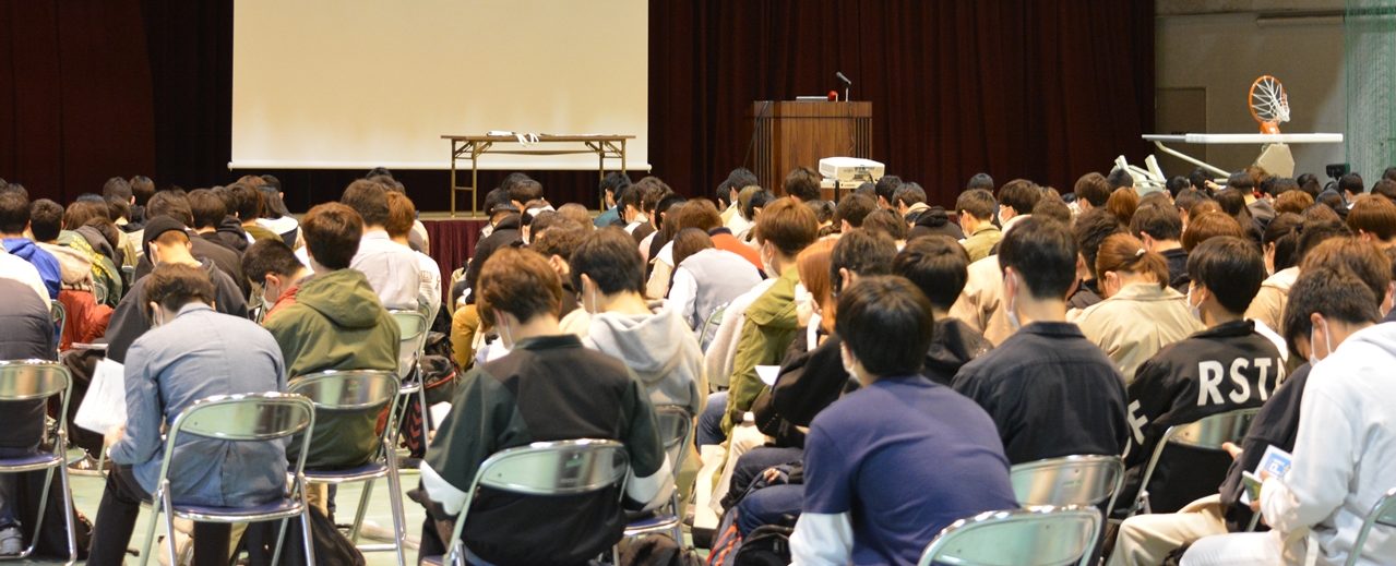 新入生約350名が出席した4日の第1回ガイダンスでは、齋藤寛学部長があいさつし、「昨年度までは新型コロナウイルス感染症の拡大もあり、学生生活に一定の制限を設けざるを得ませんでした。今年度は面接(対面)授業を基本とし、クラブ・サークル活動も十分な感染対策を講じた上で活動を充実させてほしいと考えています。海洋学部は1962年の開設以来、多数の優秀な卒業生を輩出してきました。60年の歴史を数える間に、本学部は世界規模で人類が抱えるさまざまな問題と向き合いながら、時代の要請に応じて海に関する学際的教育機関として発展してきています。皆さんもこの4年間でたくさんの友人をつくり、信頼できる教職員と出会ってください」と歓迎の言葉を述べました。また、「2022年4月から法律が変わり、成人年齢が18歳となりました。つまり、皆さんはすでに成人です。多くの自由が認められる一方で責任も発生しますので、十分に注意をして生活してください。何か困ったことがあれば、大学の教職員に相談してください」と呼びかけました。