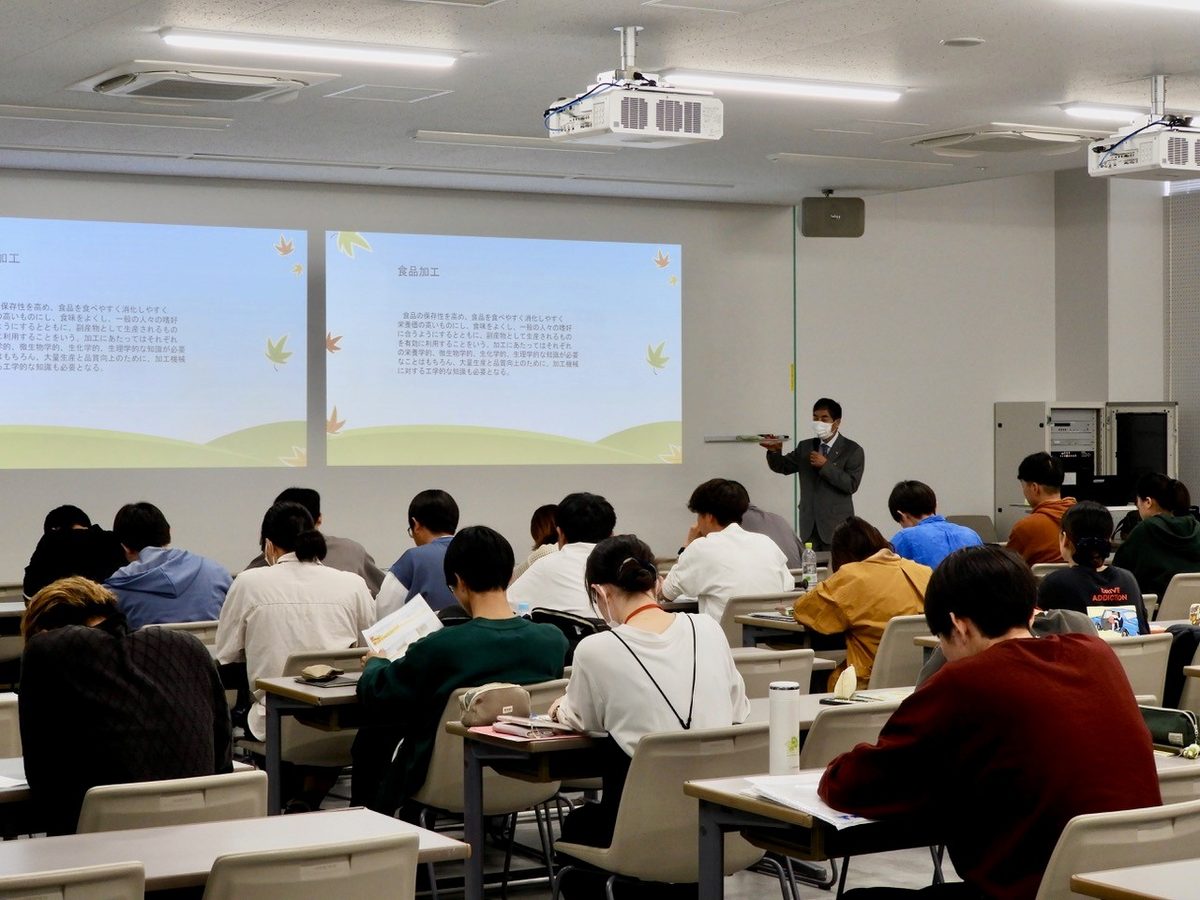 10月13日、農学部が外部講師によるフード サイエンティスト資格認定研修会を行いました。この資格は食品科学教育協議会が認定するもので、大学や短期大学等の各学校において、同協議会が定める食品と微生物に関する特定の講義、実験実習、認定研修を修了した学生を審査し、合格した学生に「食品科学技術認定証」が授与されます。これにより、フード サイエンティストと称することが認められます。