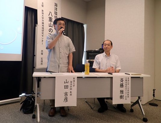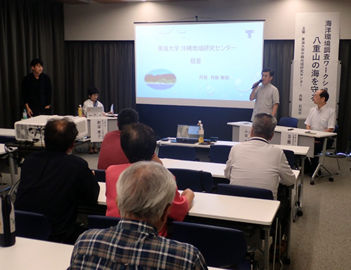 東海大学沖縄地域研究センターでは10月1日に石垣市役所で、「海洋環境調査ワークショップ~八重山の海を守る~」を石垣市との共催で開催しました。東海大学は、西表島に沖縄地域研究センターを有することから石垣市と包括連携協定を結び多岐に渡る研究協力に取り組んでいます。国内の研究者を招き、日本の管轄海域の根拠として重要な役割を担う国境離島を抱える八重山海域の海洋環境問題について考えることを目的としたものです。地元住民ら約20名が参加しました。