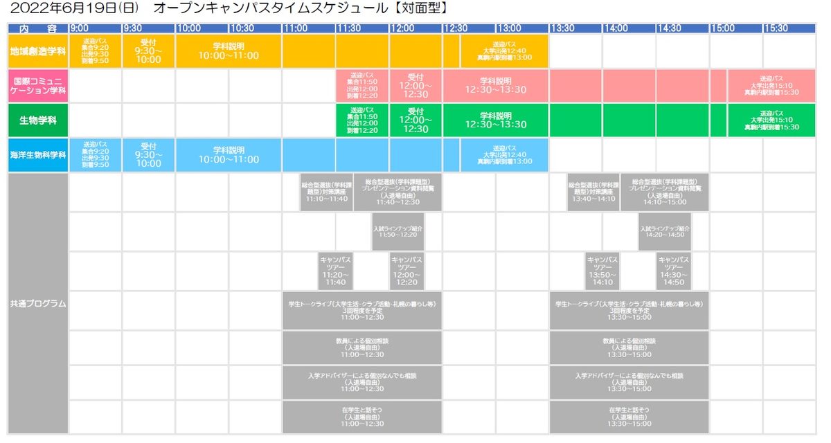 国際文化学部(地域創造学科・国際コミュニケーション学科)については、6/18(土)のオンライン型(Zoom配信)は実施しません。学科紹介は、こちらの動画(地域創造学科、国際コミュニケーション学科)をご視聴ください。なお、6/19日(日)の対面型は実施しますので、上記の対面型オープンキャンパス詳細をクリックして下さい。
