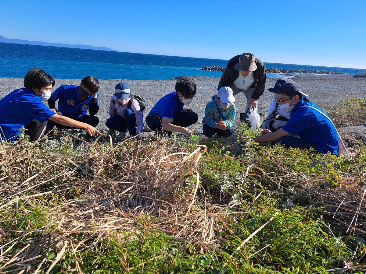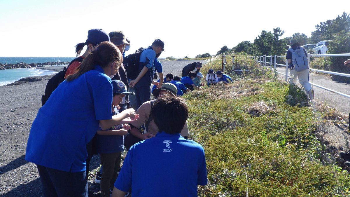 静岡キャンパスでは10月21日に海洋学部と静岡市との連携事業である「渚の植物観察会」を開催しました。富士山世界文化遺産の構成資産である三保松原で見られる海浜植物について学ぶイベントとして、静岡市環境共生課が主催したもので、小学生と保護者5組15名が参加しました。