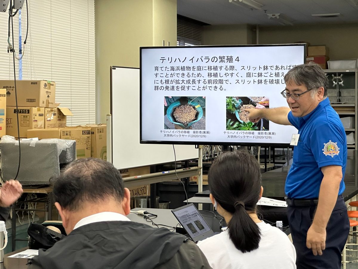 この企画を運営した環境社会学科4年次の小松優希さんは「小学生と保護者の皆さんが海浜植物に興味を持つきっかけを作ることができ大変嬉しく思います。これからも海浜植物の役割や重要性を多くの方に伝えていきたいです」と話していました。