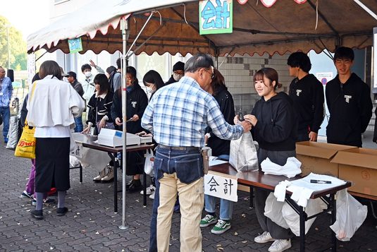 初日は、建学記念式典が執り行われた後、優れた成果を挙げた学生を表彰する「課外活動熊本キャンパス長賞表彰式」と「欅祭スポーツフェス(前・スガリンピック)」を実施。学生サークルや研究室の模擬店、教室展示が始まり、豪華賞品が当たるビンゴ大会が行われました。2日目は、「熊本ハーフウェイミュージッククラブ」のライブや、新企画の「早食い大会」、ジェスチャーゲーム「イーストブルー」、「カラオケ大会」など多数のステージ企画で盛り上がりました。最終日は、早朝から多くの来場者で列ができた欅祭名物「加工品販売」が午前中で完売するほどのにぎわいを見せ、「ガンバレルーヤ」「すゑひろがりず」「相席スタート」による芸能人ライブで会場が笑いに包まれました。夕方からは、キャンパスに隣接する付属熊本星翔高校チアリーディング部と吹奏楽部がパフォーマンスを披露したほか、「コスプレグランプリ」も実施。今年度は、直近10年間で過去最多となる3日間で約5900名が来場し多彩な企画で盛り上がりました。