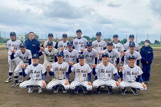 熊本キャンパスで活動する準硬式野球部が、9月17日から10月29日まで開催された南九州地区大学準硬式野球秋季大会(秋季リーグ戦)の2部に出場し、8戦全勝で優勝。11月12日に熊本学園大学グラウンドで行われた1部との入れ替え戦で熊本大学に7-2で勝利し、6年ぶりの1部昇格を決めました。1番三塁手で打率5割9分3厘をマークした入江大志選手(経営学部3年次生)が首位打者、本塁打王、打点王、ベストナイン三塁手とタイトルを総なめにし、5勝を挙げたエース鈴木涼介選手(農学部2年次生)が最多勝、14盗塁をマークした北野湧也選手(文理融合学部2年次生)が盗塁王とベストナイン二塁手に輝きました。また、入江選手と4番で捕手の田中佑樹選手(農学部2年次生)は、11月17日から19日まで岡山県・倉敷マスカットスタジアムなどで開催される全日本大学9ブロック対抗準硬式野球大会のオール九州のメンバーに選出されました。準硬式野球部から代表選手が選ばれるのは10年ぶりです。