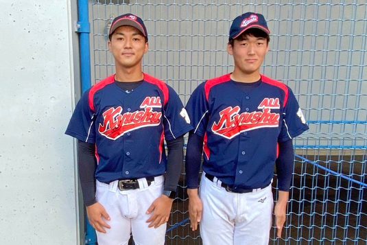 入江選手は、付属福岡高校野球部時代の同級生で現チームの主将を務める稲益蓮選手(経営学部3年次生)から、「学生最後の1年、一緒に野球をやろう」と誘われ、今夏からチームに加わりました。「最初はブランクがありましたが、すぐに勘を取り戻せました。受賞はのびのびとプレーする環境をつくってくれたチームメートのおかげ。来春もチームの勝利に貢献したい」と話します。9ブロック対抗戦については、「初めての代表選出で、すでに3回ほどチーム練習に参加していますが、レベルが高くうまい選手が集まっている印象。いろいろなことを吸収してチームに還元したい」と話しました。オール九州に選ばれた捕手4選手のうち唯一2年次生の田中選手は、「キャッチングや配球など学ぶことばかり。投手が投げやすいよう、大きく構えて、ワンバウンドのボールも全て止められるようにしたい」と意気込みを語りました。