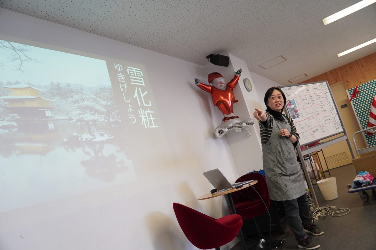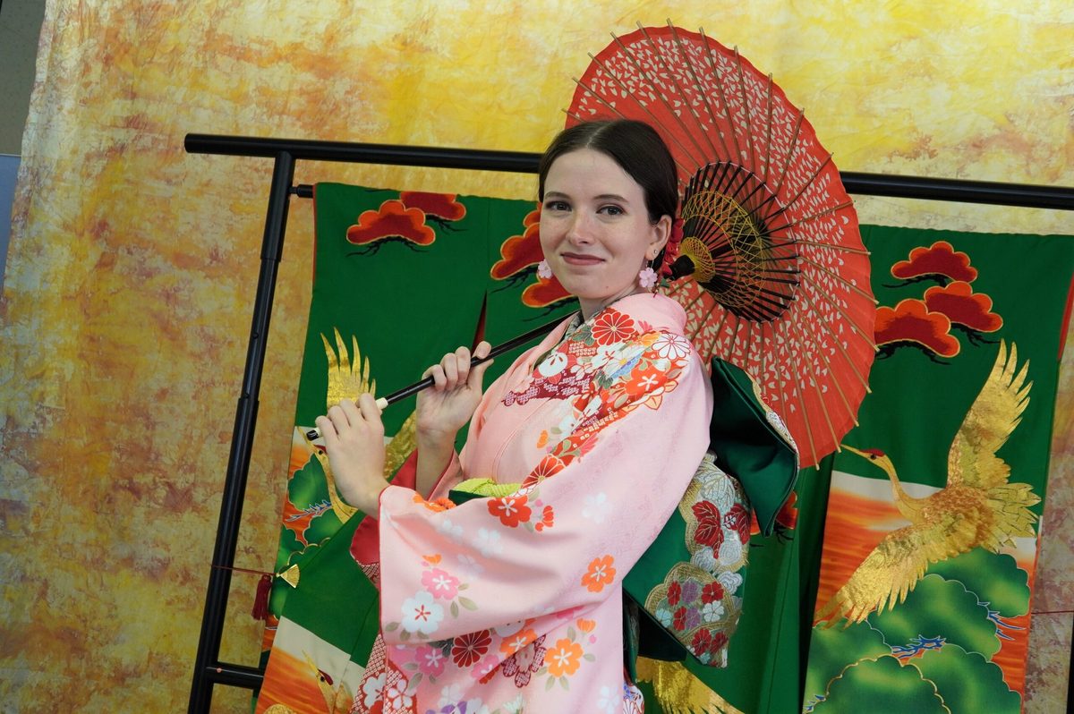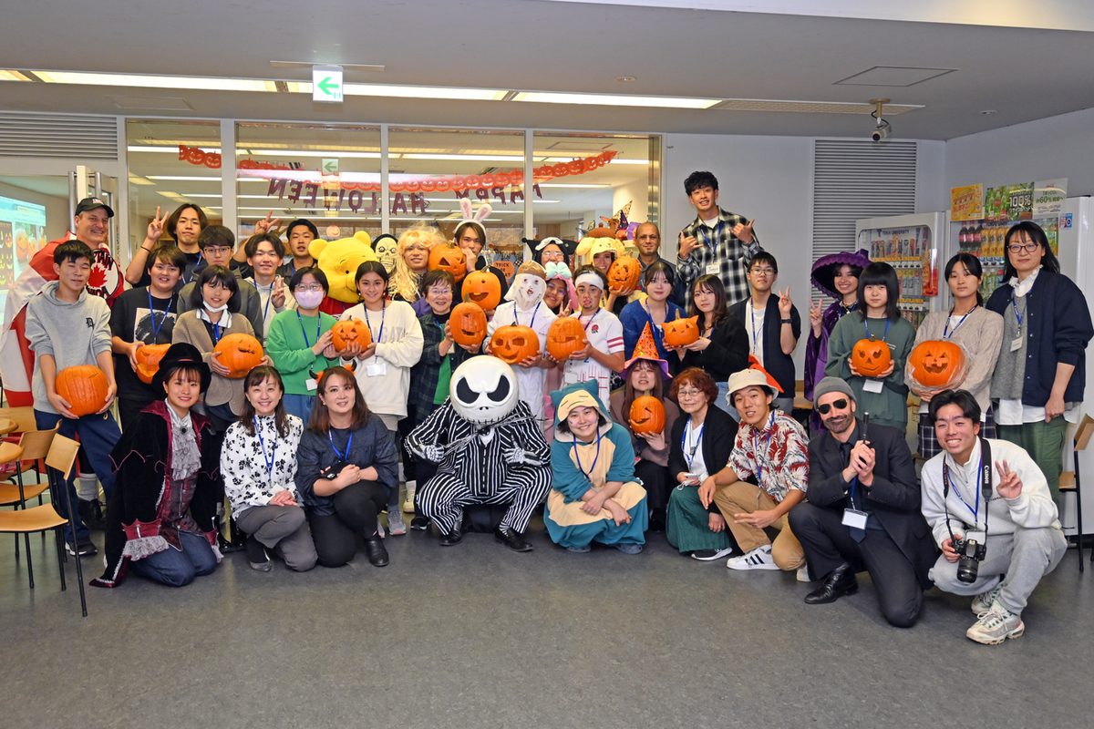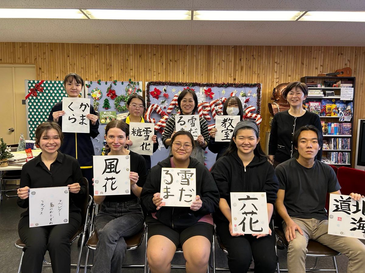 10月23日のアメリカ文化を体験する英語プログラムEXPLORING AMERICAN CULTURE「ハロウィンの起源と伝統」では、学生や教員ともに仮装を楽しみ、参加した市内の子どもたちに対してジャック・オー・ランタン作りの補助を担当しました。11月15日の着物体験では、講師の方をキャンパスに招き、色とりどりの振袖や紋付を着用。留学生たちはお互いを撮影し、傘や刀を持ってポーズをとるなど和装を楽しみました。様々な体験を通じて、日本文化を学び、本学学生や教職員との親交を深めました。12月1日には付属札幌高等学校の髙橋直子先生による書道体験を実施し、各々が冬に関連した文字を選んで作品を制作。