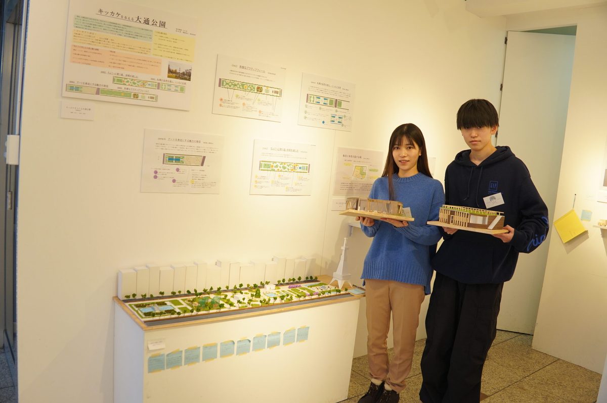 「よりアートを楽しめる大通り公園を目指し、空間設計をしてみました。デザイン文化学科は建築を学びながらデザインも学ぶことができるのが強みです。それぞれの分野に強い友人がいるので、相談することで自身の学びを深めることができます。将来は誰もがその場、その瞬間で感じられる幸せを生み出す空間を作りたいと考え、ディスプレイ業界を目指しています」