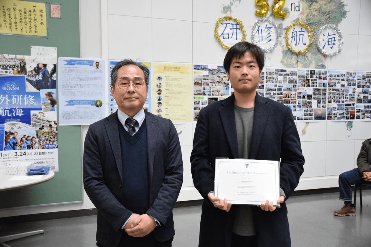本学語学教育センター主催のWriting ContestとMReader Challengeに熊本キャンパスから7名の学生が受賞し、その表彰式を2024年1月19日に開催しました。英語リーディング&ライティングの授業から推薦された英作文の内6名が入賞し、英語読本15万単語を読んだ学生一人がSilver Levelを受賞しました。