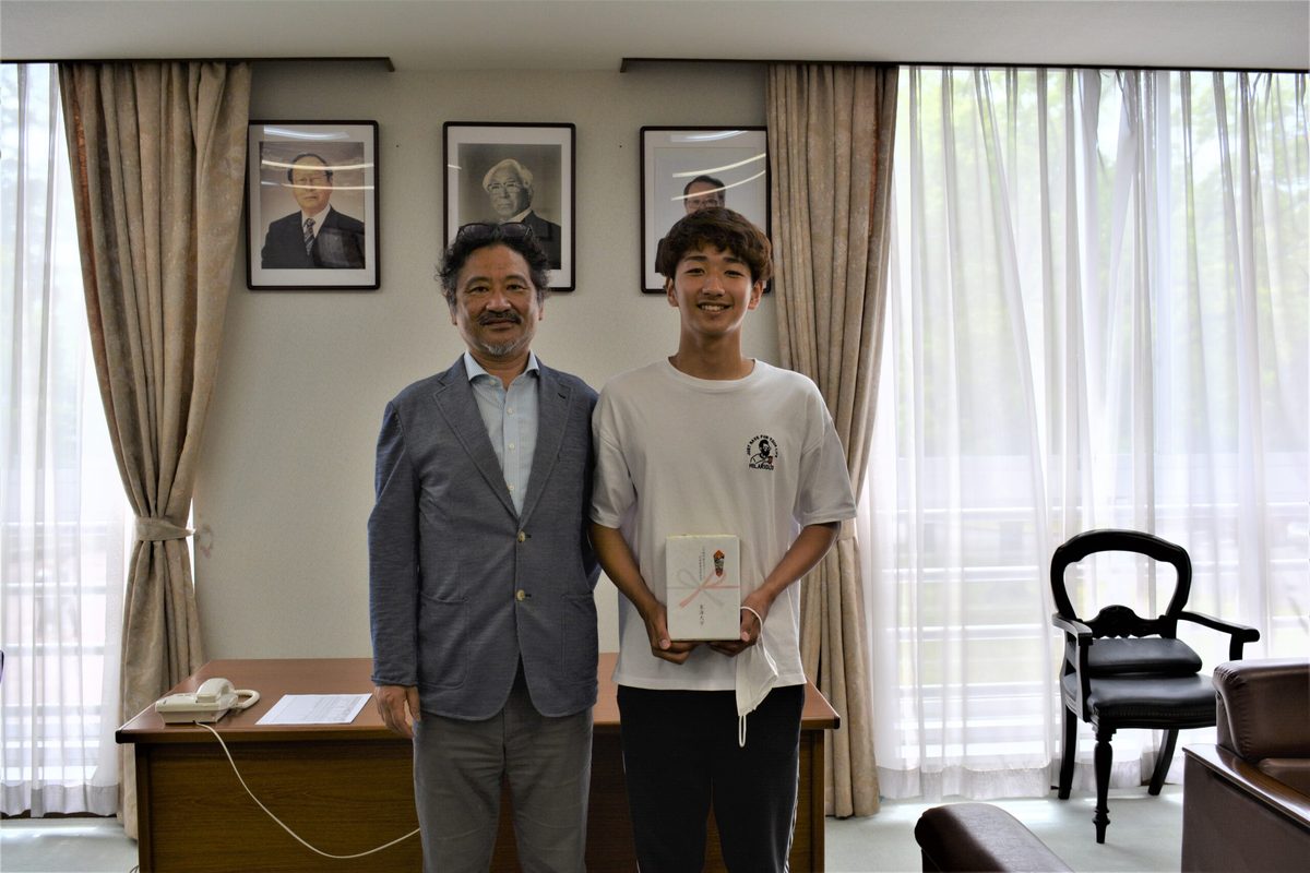 後日、川﨑一平人文学部長より増田さんに粗品の贈呈がありました。