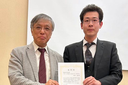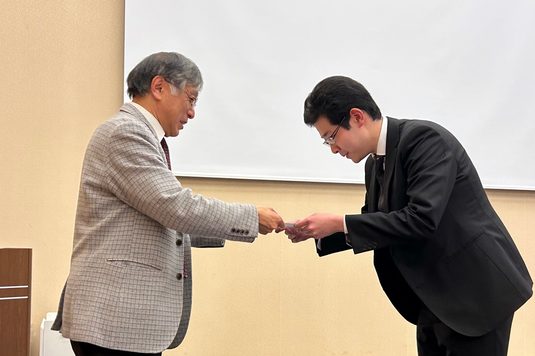 田中さんは2月13日に、櫻井教授と共に網野真一札幌キャンパス長を訪問。今回の受賞を報告しました。網野キャンパス長は、「この度はおめでとうございます。大学は教授が学生に対し学問を教授することが基本となっています。そして、入学してきた学生は先生だけではなく、その研究室の4年次生や修士の学生の姿を見て大学院への進学を決めると思います。ぜひ、学生から憧れられるような存在になっていただきたいと思います」と激励しました。