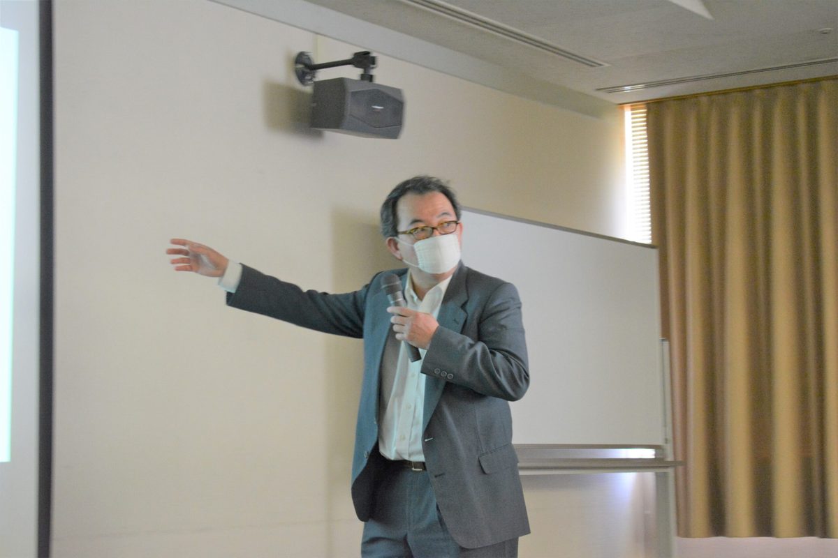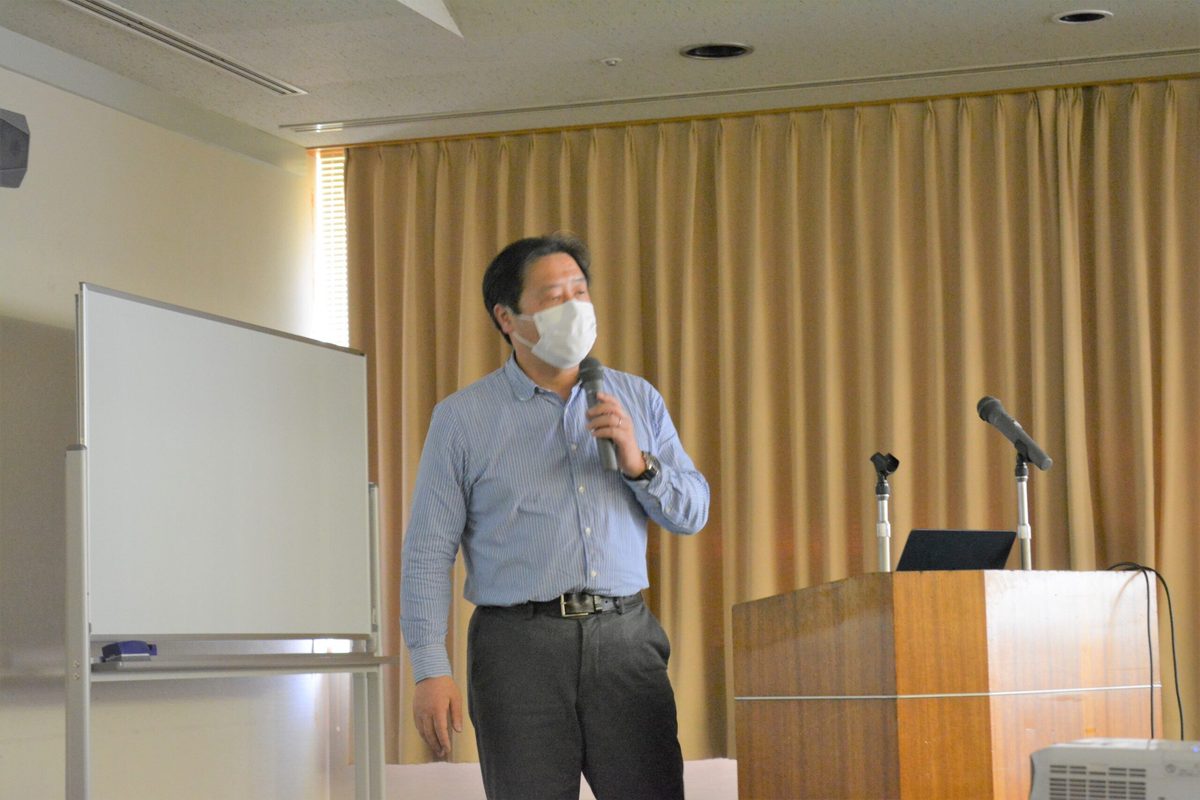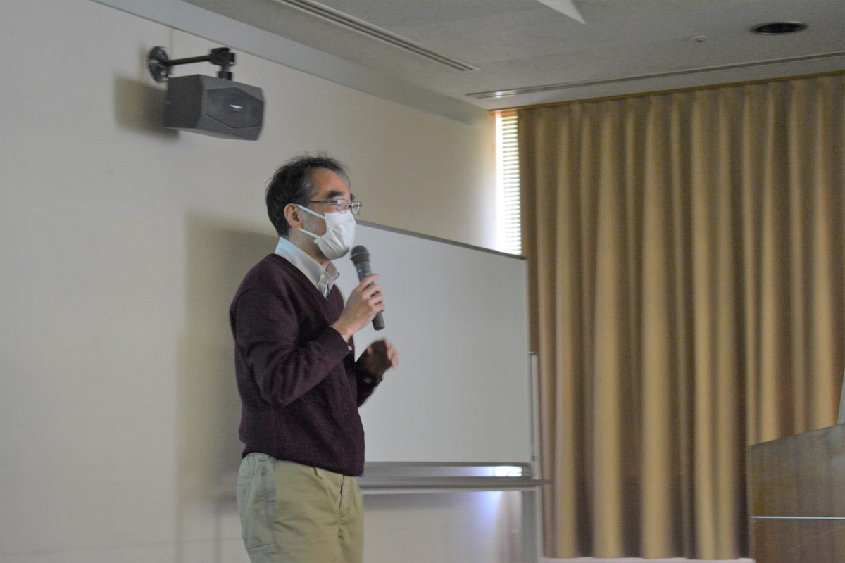 続いて、山崎剛准教授が海中の細菌のエネルギー消費について講演しました。これまで山崎准教授が異なる海域で採取した細菌のそれぞれの特徴などについて説明し、菌によって分解できる糖類が違うことについて話しました。