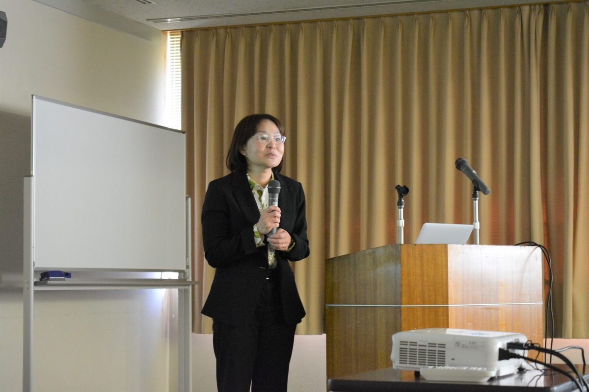 廣瀬慎美子准教授はサンゴについて講演。はじめにサンゴとサンゴ礁の違いについて触れ、サンゴの種類やサンゴが苦手とする環境や白化現象のメカニズムついて解説。学生とともに発見した研究成果ついても報告されました。