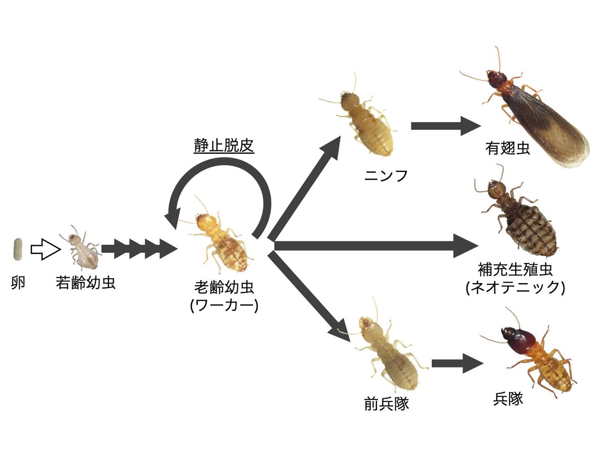 生物の姿や形はどのようにしてきまっているのでしょうか?全て遺伝子が決めていると考えてしまいそうですが、実はそれだけではないのです。温度などの環境や、巣仲間、他の生物との関わりによっても姿形を変える生き物もいるのです。このような関わり合いによって姿形を変えるシロアリやカメムシなどの昆虫をはじめとする無脊椎動物を対象に、生物の形作りやその進化の仕組みについて研究しています。研究の過程で思いがけない生物の巧妙さに気付かされる時に魅力を感じます。
