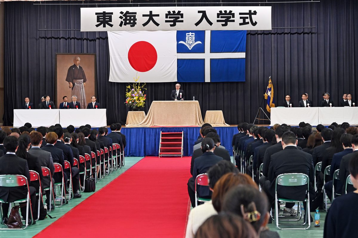 新入生たちは、「映像制作の授業を楽しみにしています。メディアについて深く学んで就職につながれば」「観光に興味があるので在学中にさまざまな観光地を巡りたいと考えています。大学では自分の時間が増えるので有意義に使いたい」「韓国文化が好きなので、語学の勉強に取り組み留学もできれば」「入学式に出席して、これから4年間しっかり頑張らないといけないと気が引き締まる思いです。目標を持って東海大学に入学したので夢を果たせるように努力していきます」とそれぞれ4年間の抱負を語っていました。