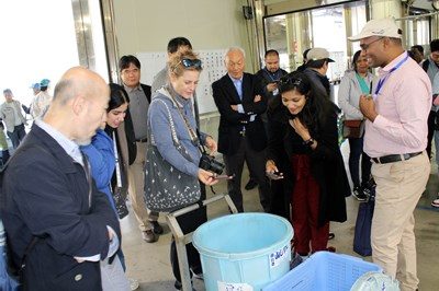 李准教授は、TBTI Japanが作成した発行物や活動実績、及び新しくスタートする「小規模漁業SHIN白書」プロジェクトなどについて報告したほか、「脆弱性から可能性へ」のセッションでは、小規模漁業に関する国際研究チーム「グローバルパートナーシップV2V(Vulnerability to Viability)」での研究内容を紹介し、海や漁村の地域資源の魅力を活用する「海業(うみぎょう)」における日本の取り組みについて解説しました。大西教授は「小規模漁業における組織の協力の在り方」と題し、漁業を成功させるために必要な政策の要素を説明。「日本の漁業におけるジェンダー問題の解決策:三重県菅島の海女を事例に」のテーマで講演した村岡未夢さん(大学院海洋学研究科2年次生)は、研究背景や菅島でのフィールド調査結果を報告し、「初めての国際学会参加でとても緊張しましたが、他の参加者の方からよかったと言ってもらえて自信になりました」と手応えを口にしました。また、11日に静岡市・由比港で行ったフィールドワークでは、静岡市農林水産部水産漁港課のしずまえ振興係も参加のもと、市場の見学や魚捌き体験、タイ・カナダ・日本の漁業者によるパネルディスカッションなども実施され、4日間を通して多様なプログラムが展開されました。