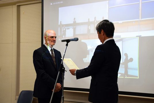 文理融合学部地域社会学科のセタキス ラリー ジョン准教授が「2022年度ティーチング・アワード」の優秀賞に選ばれ、4月1日に授賞式で木之内均熊本キャンパス長から賞状と目録が授与されました。本学では教育の質向上を目指し、2002年度から優れた授業を行う教員らを「ティーチング・アワード」として顕彰しています。学生による授業アンケートなどの結果に基づき、学長室を中心とした厳正な審査を経て学長により決定されるもので、2023年度は5名に優秀賞を授与しました。