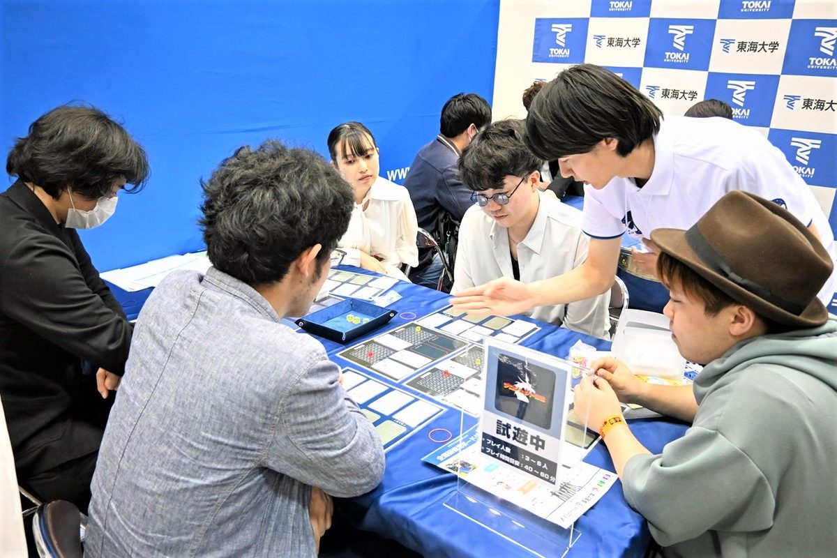4月27、28日には東京ビッグサイトで開催された「ゲームマーケット2024春」にブースを出展。当日は、ボードゲームの体験コーナーを設置し、有志学生5名が運営をサポートしました。来場者は、「こんな研修だったら受けてみたい」「楽しいボードゲームだけでなく、研究のエビデンスがあって面白い」「初対面の人と同じグループを組んで参加しましたが、ゲームを通してコミュニケーションが取れました」と話していました。白澤准教授は、「ゲーム教材を受け入れてもらえるか心配していましたが、当日は企業で人事を担当されている方にも多く来場していただき、反響を得ることができました。今後はボードゲームの市販や企業研修への導入実現に向けて、さらに活動していきたい」と語っています。