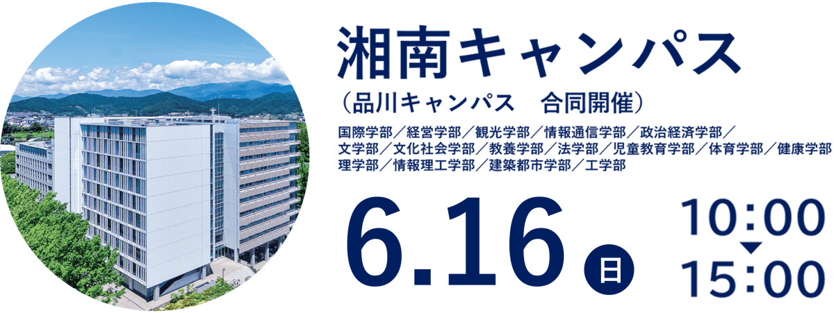 人文・社会学系から理工系、さらにスポーツ系まで、バリエーションに富んだ学部・学科が集結した湘南キャンパス。