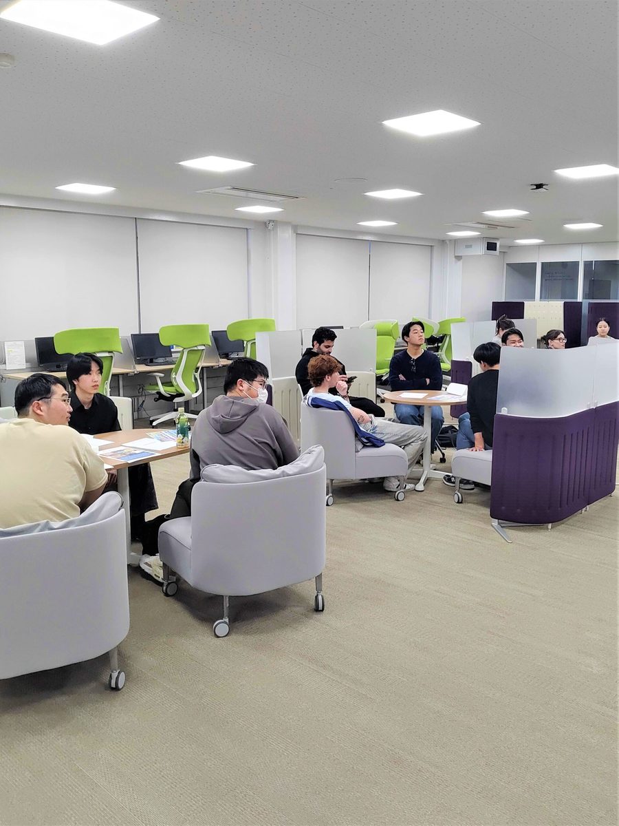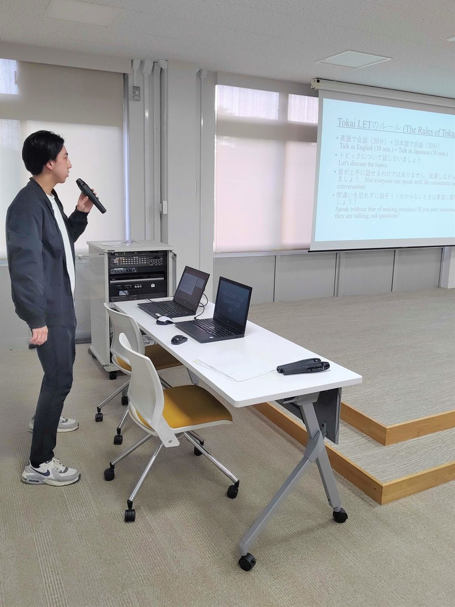 19日には1号館Global AGORAを会場に、本キャンパスで活動するチャレンジプロジェクトの「Tokai International Communication Club(TICC)」所属の学生有志によるグループ「Language Exchange Table」(LET)が企画した留学生との交流イベント「TOKAI HYGGE LET」を開催しました。LETは、過去に留学プログラムでカナダ・ブリティッシュコロンビア大学に留学した学生たちが、本学で学ぶ外国人留学生との交流と言語交換を目的に立ち上げ、その交流を通じて留学生に日本語や日本の文化を伝える活動もしています。当日は参加者を複数のグループに分け、英語と日本語を用いて事前に用意されたテーマに沿って語り合いました。また、26日にも同じくAGORAで「留学体験者との交流会」を実施。アメリカ、カナダ、デンマーク、ニュージーランドなど大学の派遣留学プログラムで各国に留学した学生たちが海外留学に興味を持つ学生に現地のプログラムの詳細や、当時の思い出や海外生活での注意点、留学後の学生生活に生かされた経験などを紹介しました。また、その後は留学経験者と留学希望学生達とテーブルを囲み、個別の相談に応じていました。