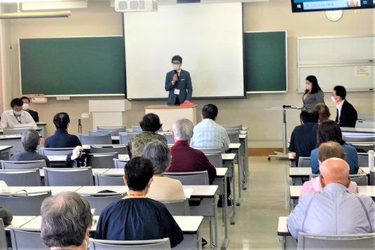 伊勢原キャンパスで5月18日に、「2023年度東海大学健康クラブ 市民健康スポーツ大学」の閉講式を行いました。この講座は、東海大学、伊勢原市、株式会社ハイクラスの産官学連携として、市民の健康づくりや体力の向上を目指し毎年開講しています。期間中は、医学部看護学科と体育学部生涯スポーツ学科、健康学部健康マネジメント学科の教員らで構成する「東海大学健康クラブ」のメンバーと健康運動指導士を目指す生涯スポーツ学科の学生、ハイクラスのスタッフが講師を務め、心身の健康に関する講義や筋力トレーニング、体力づくりのためのエクササイズを実施しました。20年度と21年度は新型コロナウイルス感染症の影響により中止しましたが、22年度に期間を縮小して再開。今年度は19年度以前と同じ全18回を開講し、40代から80代の65名が入会しました。