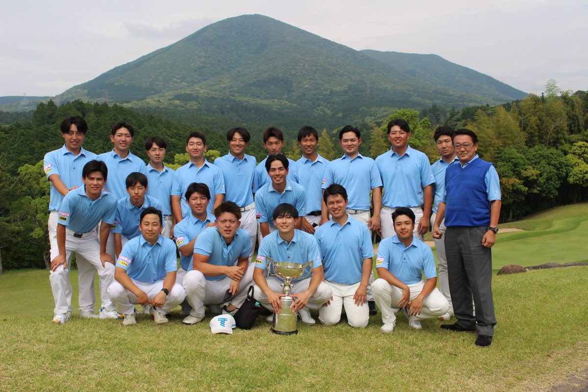 本大会には同部から男子 19 選手、女子 6 選手がエントリー。2 日間のトータルスコアで競い合われ、男子は遠藤崇真選手(文理融合学部 3 年次生)が初日 7 アンダーの 1 位スタートからトップを譲ることなく 2 日目 4 アンダーの 11 アンダー133 のスコアで回り優勝を遂げました。また、後藤颯太選手(同 3 年次生)、大柿天嵩選手(同 1 年次生)が 4 打差 7 アンダー137 のスコアで 2 位タイに入り、4 年連続表彰台を独占しました。また、女子は内藤舞美選手(同 2 年次生)が 5 アンダーで 139 のスコアで回りこちらもトップを譲ることなく優勝を果たしました。