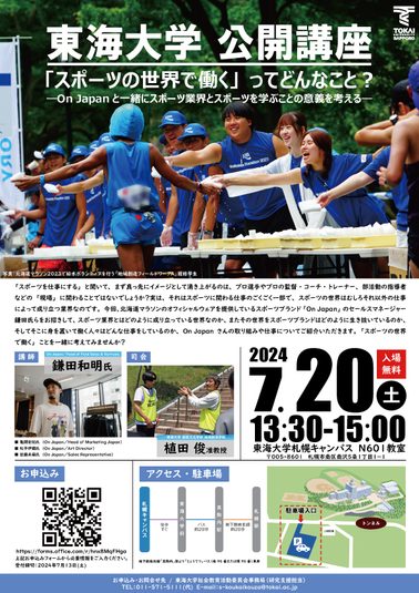 札幌キャンパスでは7月20日(土)東海大学公開講座「スポーツの世界で働く」ってどんなこと?―On Japanと一緒にスポーツ業界とスポーツを学ぶことの意義を考える―を開催します。