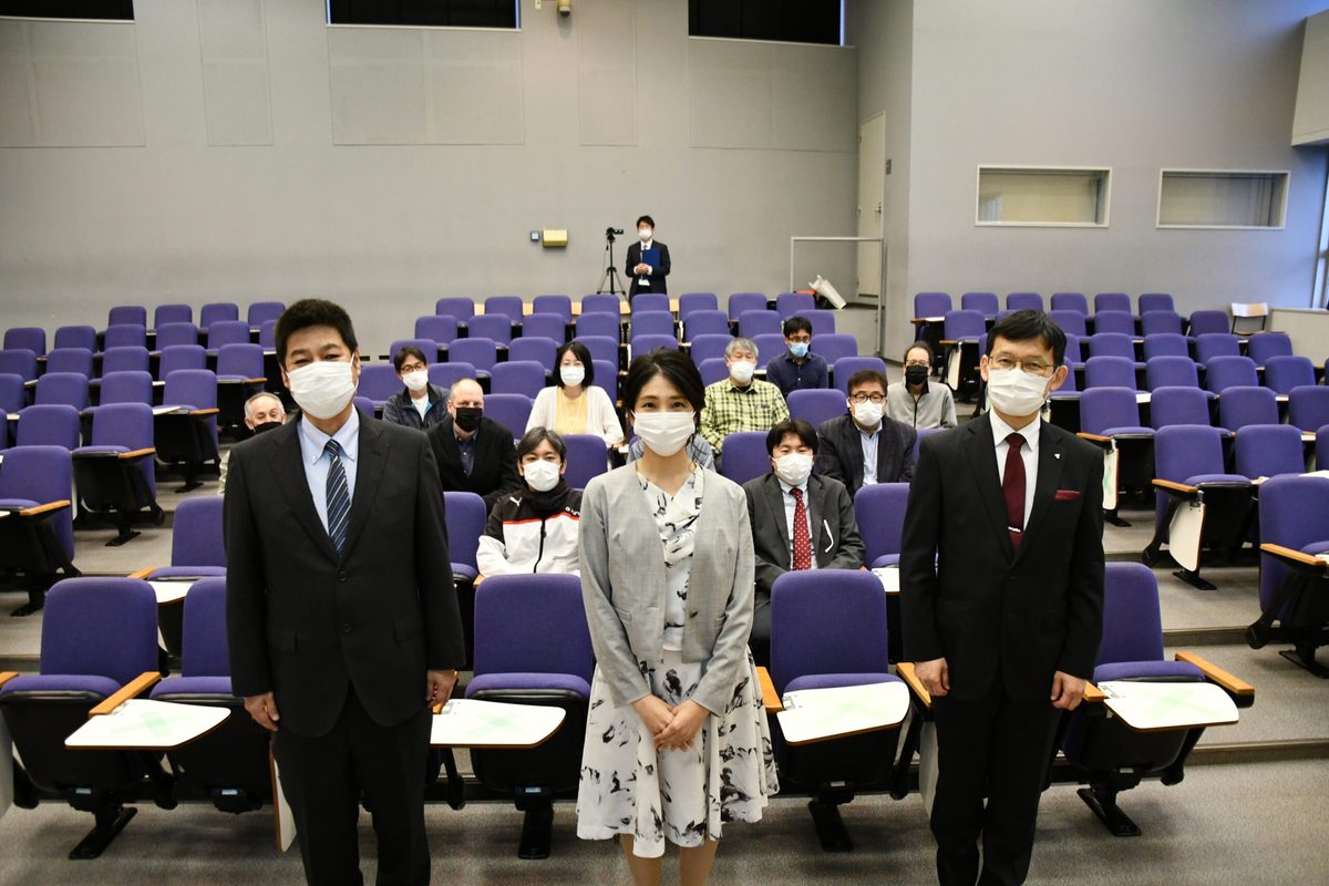 札幌キャンパスでは5月12日に、マルチメディアホールで教員を対象としたFD研修会「マスクをつけていても『通る』声を作る秘訣」を開催しました。北海道放送の堰八紗也佳アナウンサーを講師に招き、新型コロナ禍でオンラインによる遠隔授業が続いたため学生と面と向かって講義を行う機会が減少した一方、今年度から対面による面接授業を実施する中で教室では教員もマスクを着用するため、制限のある中でも“通る声”をつくることでより学生に内容が伝わる授業を実現しようと企画したものです。