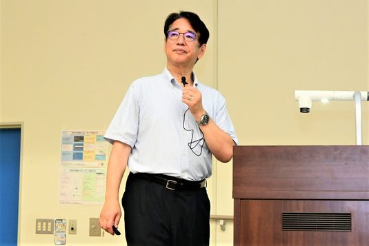 湘南キャンパスで6月26日に、平和戦略国際研究所の上月豊久所長(国際学部教授)による特別セミナー「ロシアの内外情勢とウクライナ侵略」(主催:平和戦略国際研究所、共催:政治経済学部政治学科、国際学部国際学科)を開催しました。両学科の学生と教員ら約100名が参加しました。上月所長は外務省入省後、欧州局長、官房長を経て2015年から23年までロシアに特命全権大使として駐在。2024年度から本学に着任しました。