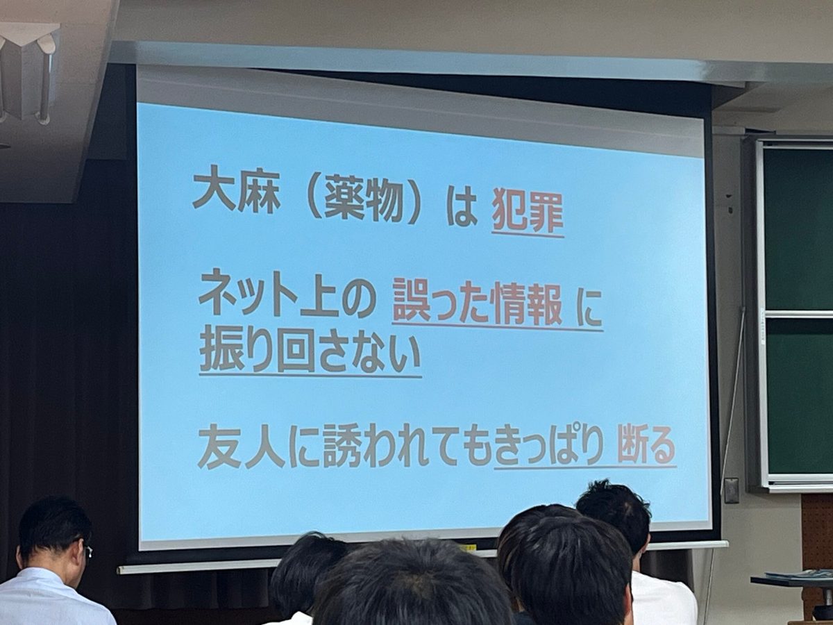 静岡キャンパスでは7月11日に静岡キャンパスに在籍する学生を対象に薬物乱用防止を啓発する講演会を開催しました。静岡県が今年5月に策定した「令和6年度静岡県薬物乱用対策推進方針」によると、県内で2023年に大麻の所持などで検挙された197人のうち、10代〜20代の割合が71.6%と高く、若い世代への大麻の蔓延が深刻な社会問題となっています。本講演会はそのような状況を受け、夏休み前に薬物の恐ろしさを周知し、薬物乱用防止を啓発するために開催されたものです。
