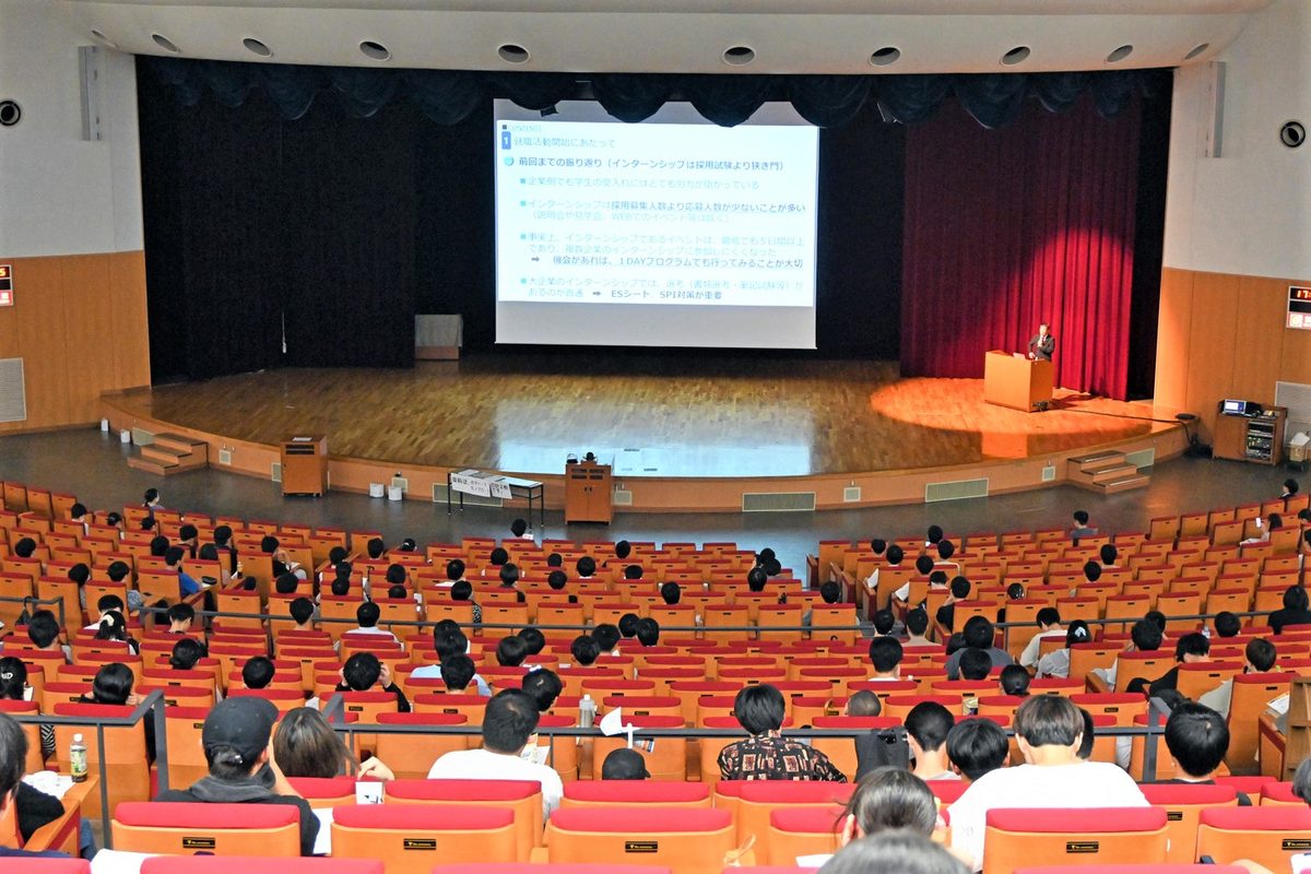 湘南キャンパスで9月21、22日に、学部3年次生、修士1年生を対象にした「第3回就職ガイダンス~Gear Change!採用選考対策~」を実施しました。今年度3月から本格的に開始する採用選考に向けた準備を進めてもらおうと、4月、9月に続いて開催したもの。2日間で約1200名が参加しました。