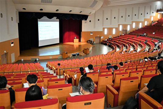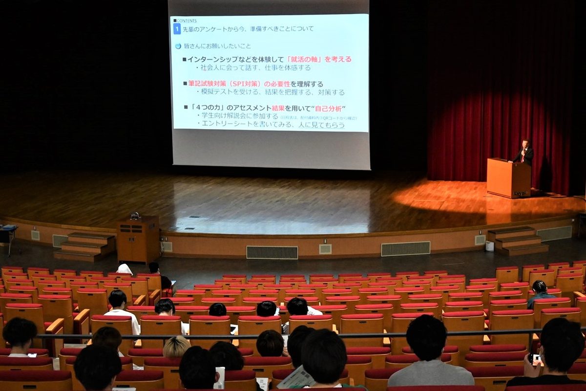 湘南キャンパスで6月5、6日に、学部3年次生と修士1年次生を対象にした「第2回就職ガイダンス」を開催しました。就職活動のスケジュールや筆記試験対策などを伝え、インターンシップ参加に向けた準備を進めてもらおうと開いたものです。2日間で約1200名が参加しました。