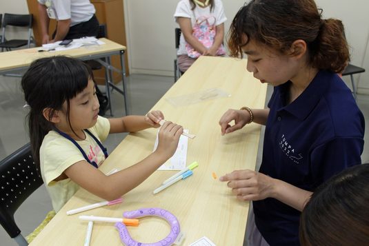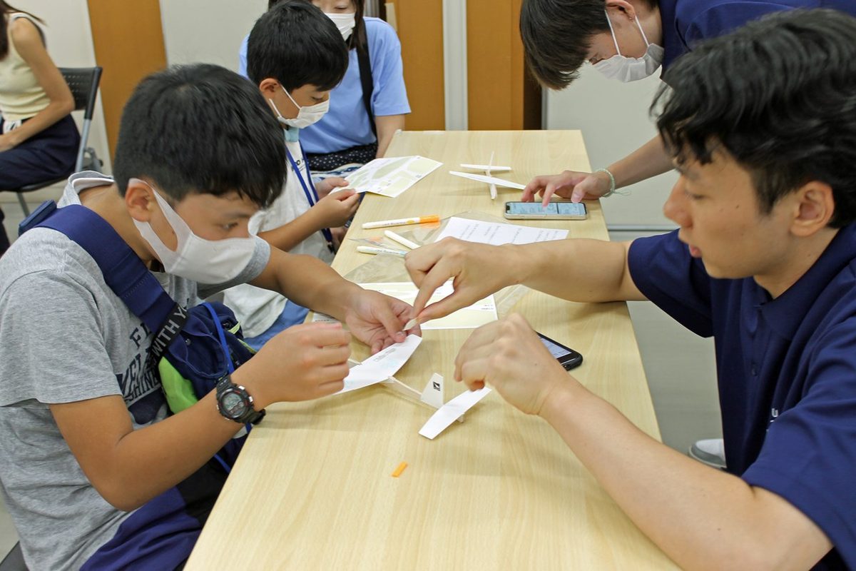 小学生やその保護者ら20名が参加した当日は、プロジェクトメンバーがチームの活動を紹介。続いて、専用のキットを使った紙飛行機づくりを行い、参加者が主翼や尾翼などのパーツを好きな色で彩り、メンバーがサポートして紙飛行機を完成させました。その後、実際に作った紙飛行機を飛ばして参加者からは、「難しかったけれど、うまく飛ばせたときは楽しかった」といった感想が寄せられました。