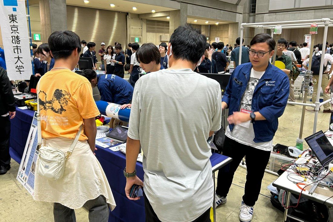 チャレンジプロジェクト「東海大学学生ロケットプロジェクト」が、9月21、22日に東京ビッグサイトで開催された「Maker Faire Tokyo 2024」にブースを出展しました。このイベントは、ロボットや自作楽器、乗り物など、物をつくる企業や個人・団体が各地から集って作品展示や交流を行うものです。6度目の参加となった今回は、プロジェクトの活動や技術力を知ってもらおうとメンバー11名が運営にあたりました。