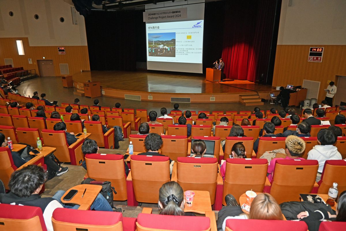 キャンパスライフセンターでは2月17日に、湘南キャンパスで「2024年度チャレンジプロジェクト最終報告会/Challenge Project Award2024」を開催しました。今年度採択された19プロジェクトの代表メンバーが、昨年4月から全国各地で展開したものづくりや国際交流、社会貢献、環境・動植物保護などさまざまな分野の活動を通して得た成果や学びを報告するものです。湘南キャンパスを拠点にオンラインも併用し、静岡、熊本、札幌の各キャンパスに配信しました。